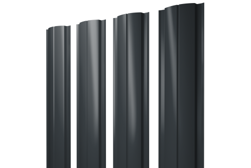 Штакетник Полукруглый Slim с прямым резом 0,45 PE-Double RAL 7016 антрацитово-серый в Наволоках