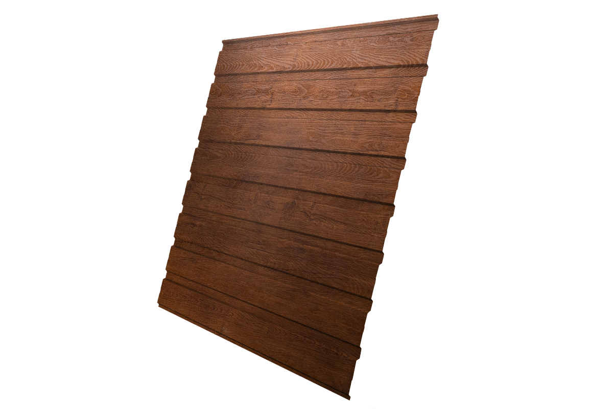Имеет высоту профиля, которая позволяет использовать это профнастил более широко. Он может быть использован для облицовки фасадов, возведения ограждений и в качестве кровельного материала для небольших кровель (крыльцо, беседки и прочее).