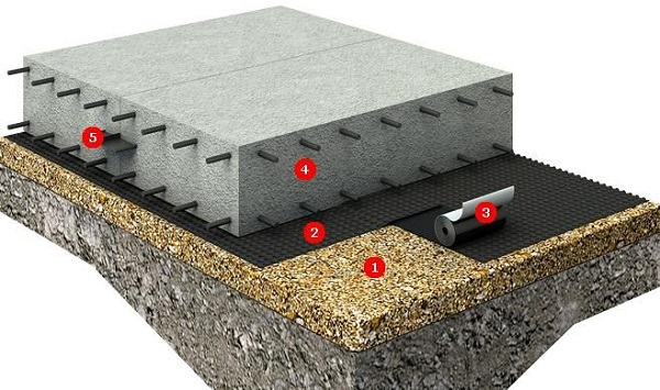 - защищающий плиту фундамента от напора влаги, просачивающейся снизу.