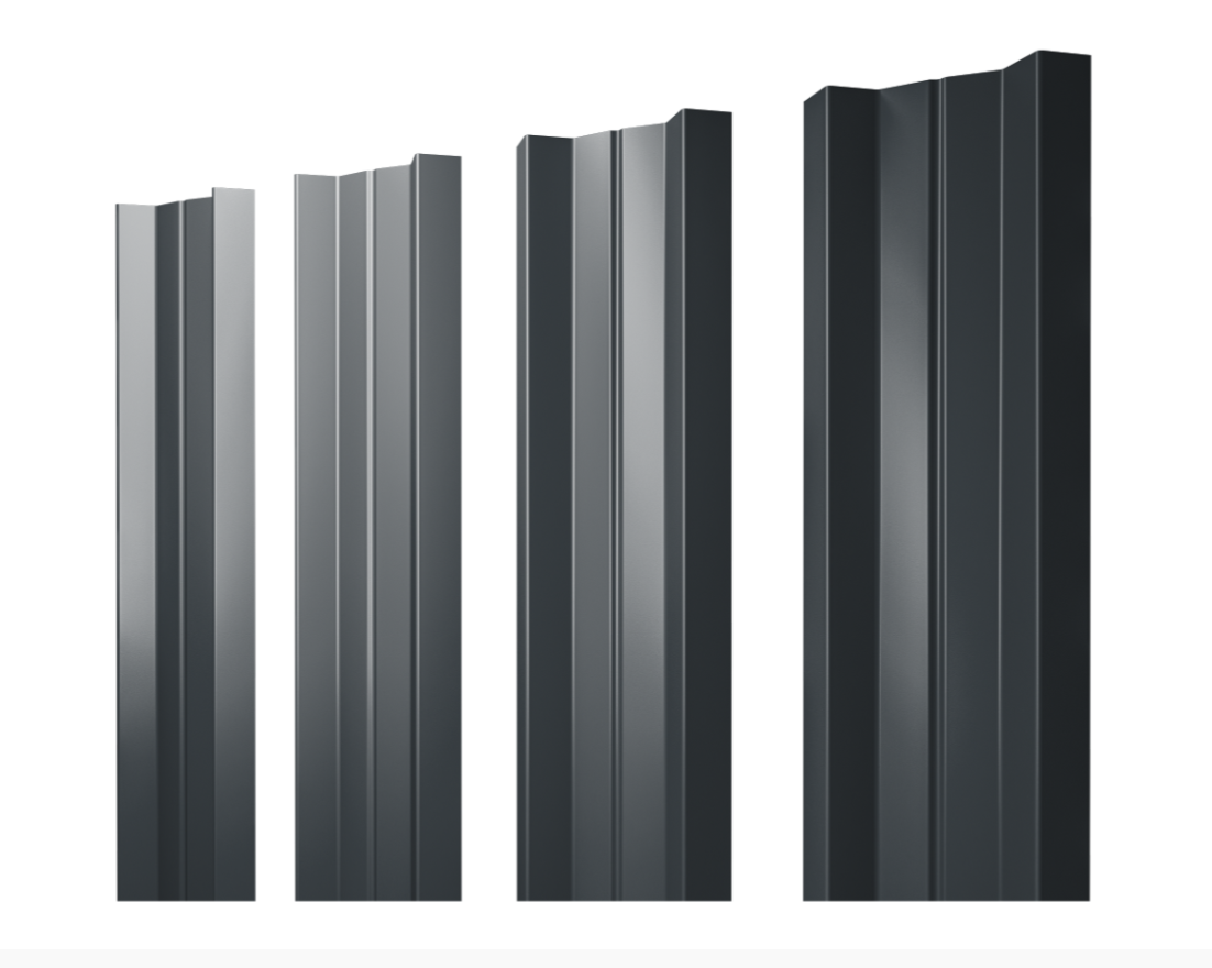 Штакетник М-образный А с прямым резом 0.5 GreenCoat Pural BT, matt RR2H3 (RAL 7016 антрацитово-серый)